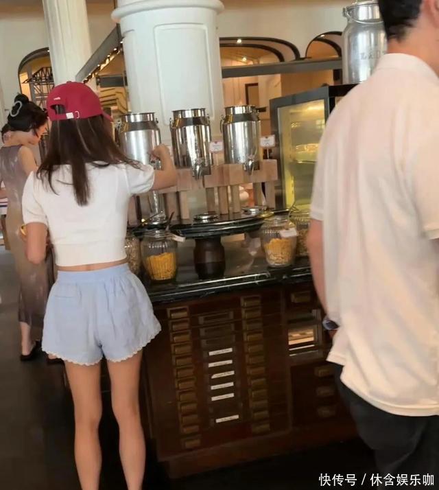 简约又不失好看的一身,腿又细又长,状态真的太显年轻了。这应该是在酒店吃早餐,和蔡依林一起同行的应该是她的家人。