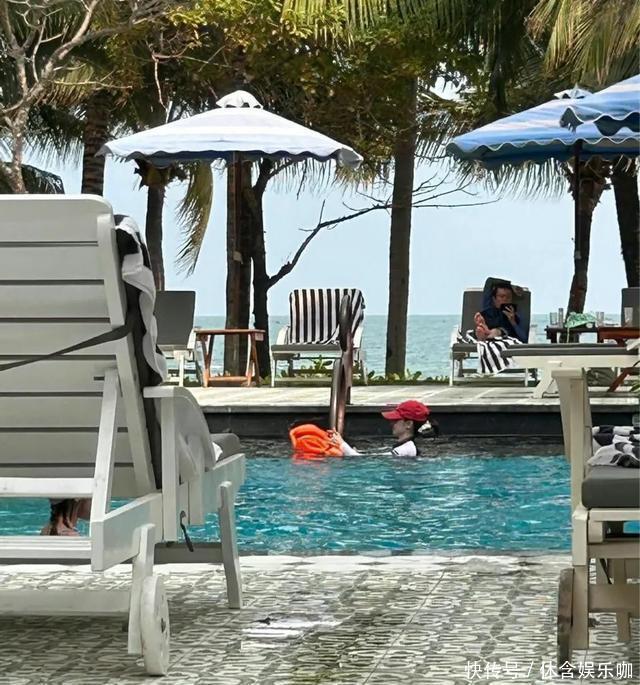 这身黑色的泳衣也很显她的身材,前凸后翘的,照片里还能看出她很放松、开心。台上的大明星私底下竟像个小女生,这种反差也是很让人喜欢了。